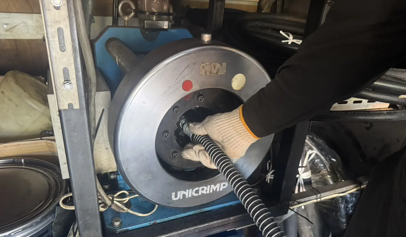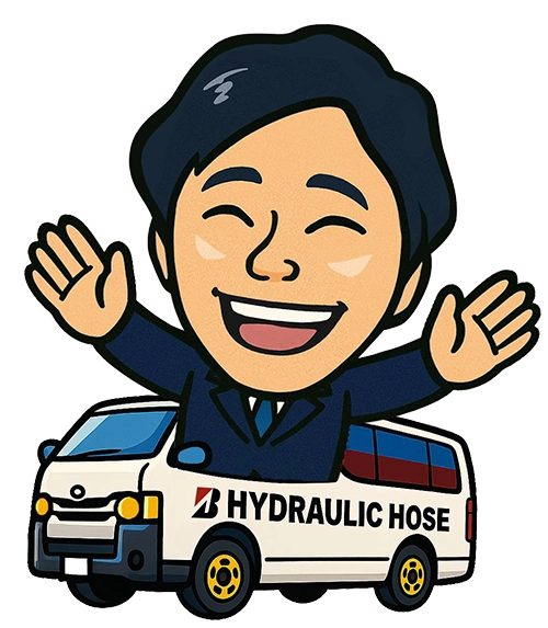 専用車両で現場へ直行し、その場で油圧ホースの製作・交換を行います。