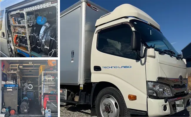 4t回送車ユニック付(1台)、3tユニック車(1台)、軽トラック(1台)